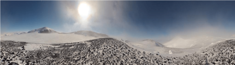 Mt Melborne it is a 2800m active geothermal site. While there the researchers experienced 50 knot winds with a wind chill below -60 celcius.