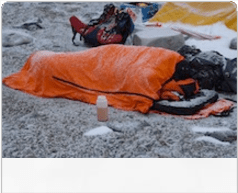 To keep warm and comfortable in extremely cold temperatures, down filled sleeping bags were issued at Scott Base that are designed so that there was an outer bag and an optional inner bag that could be zipped together to form a single sleeping bag.