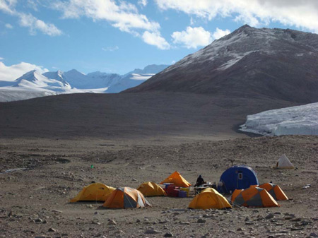 The standard issue was the Polar Pyramid two-man tent that was used in both camps for a toilet tent, mainly because people could stand up in it and can handle very strong winds. A design based on the tents used by Scott in the early 1900s, the Polar Pyramid is a reliable tent used in all of our field camps.